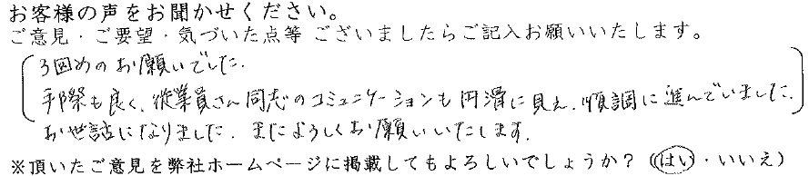 また、引越し作業終了時、当社による過失の有無『引越作業確認書』をご確認いただき、ご署名をいただいております。ご署名後のご申告につきましては、ご対応できかねる場合がございます。